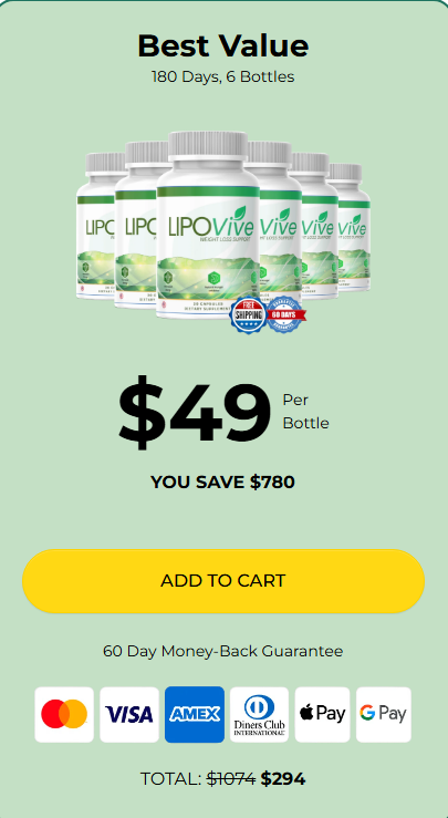 If you are looking for a supplement that combines natural ingredients, metabolic support, and wellness benefits, LipoVive may be worth considering. To ensure authenticity and access the latest offers, it is recommended to purchase the product through the official website by clicking the button below.