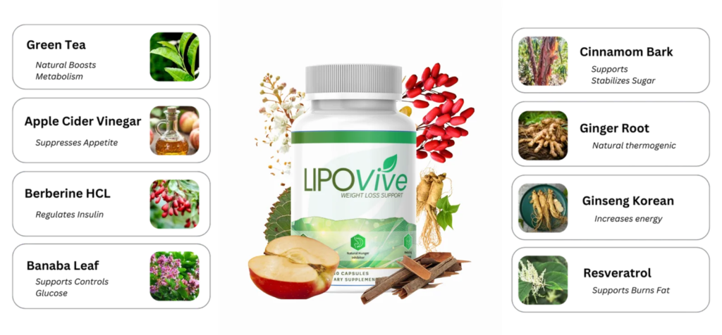 LipoVive stands out for its carefully selected natural ingredients, each designed to support metabolism and overall wellness.